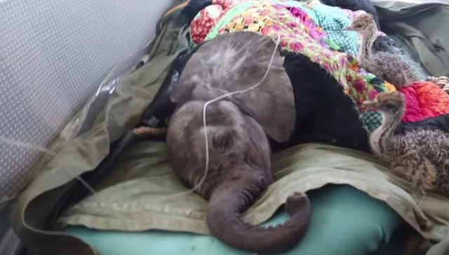 @Dodo/@Melissa_Cronin - Triple Rescue: Baby Ostriches Comfort Baby Elephant As He's Airlifted